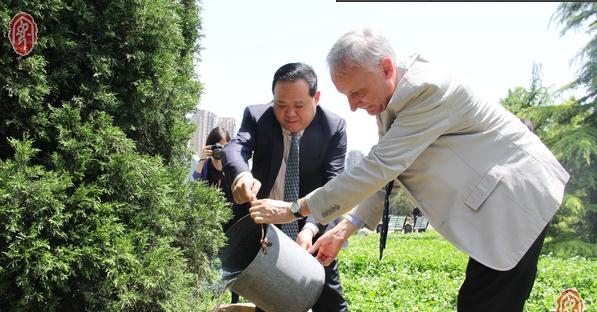 隨后,在易園舉行的共植友誼樹活動上,馬林青發(fā)表了熱情洋溢的致辭。他說,共植友誼樹,情深萬年長。這片蒼翠繁茂的國際友好交往紀念林,見證了安陽與加拿大萊橋市、韓國安養(yǎng)市等多個國際友好城市的交往合作。此次我們共同種植下第十四棵友誼樹,相信在大家的共同呵護下,中法友誼之樹必將根深葉茂、萬古長青。阿蘭·拉巴特,法中友協聯合會秘書長、弗朗什—孔泰中國友協主席阿蘭·嘉寶賀喜,南特—大西洋中國友協主席愛德蒙·博雷,雷恩中國友協主席玫雅琳等紛紛發(fā)言,共同表示,將努力為深化中法兩國人民友誼作出更大的貢獻。